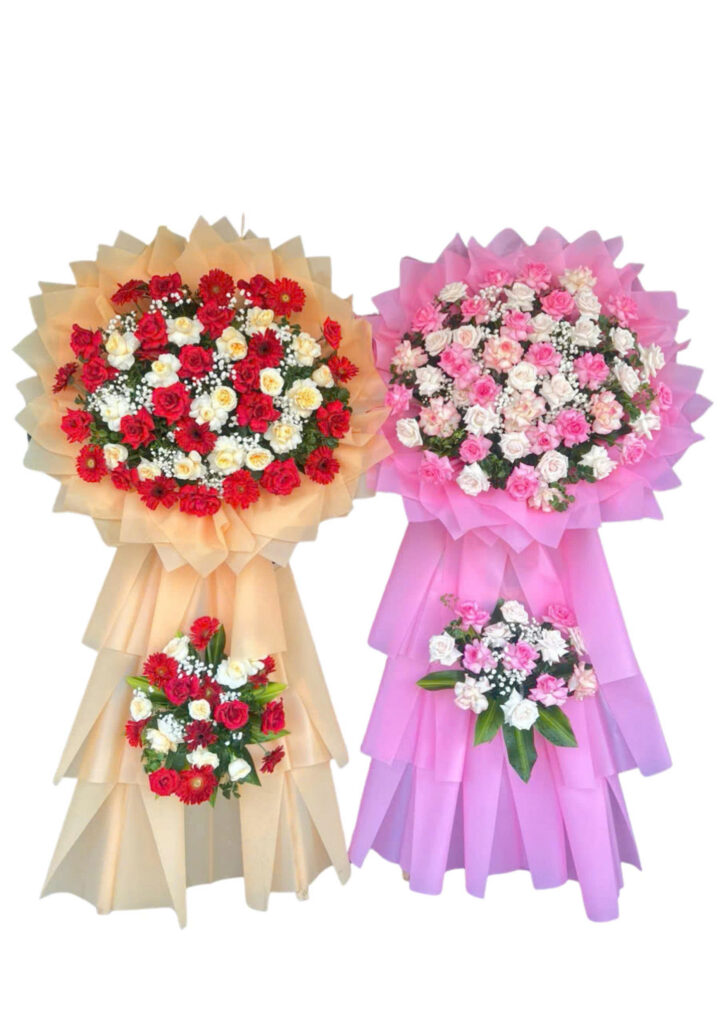 Hoa khai trương mang thông điệp phát tài – phát lộc – thành công rực rỡ. Các mẫu kệ hoa, lẵng hoa khai trương tại cửa hàng được thiết kế nổi bật, trang trọng, phù hợp cho: